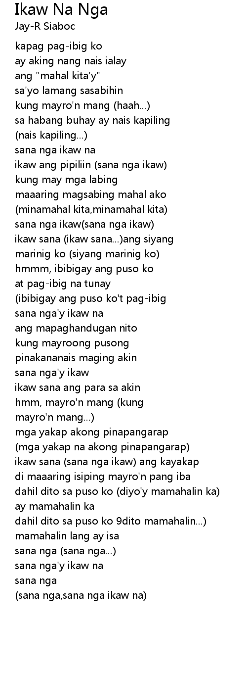 Choose one of the browsed Ikaw Bisaya lyrics get the lyrics and watch the video. Kailangan koy katulad mo Sa buhay kong ito Nag-iisa lang sa mundo Datiy nasaktan na ko Takot nang magtiwala Ayoko na sanang umibig pa Ngunit ikay ibang-iba Sa lahat ng nakilala Sana ay ikaw na nga Anong kilangan kong gawin Upang matigil na Ang kabaliwan kong ito Sumpa ko sa sariliy Hinding-hinding hindi na Ngunit heto na naman ako. Ikaw pala ang langit ng pag-ibig ko.
