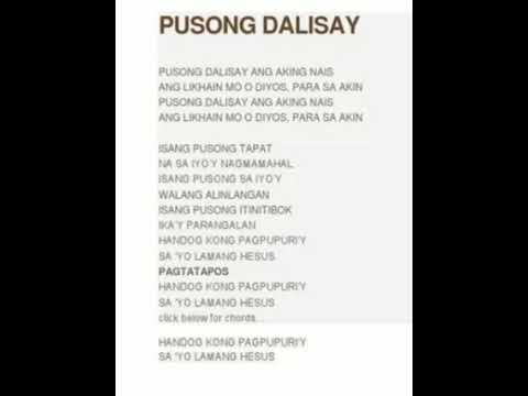 Pusong dalisay ang aking nais lyrics. Pusong dalisay ang aking nais. Pusong dalisay ang aking naisNa likhain mo O Diyos para sa akin Isang pusong tapat na sa iyoy nagmamahal Isang pusong sa iyoy walang alinlanganIsang pusong itinitibok ang ikay parangalan. Isang pusong tapat na saYoy nagmamahal.