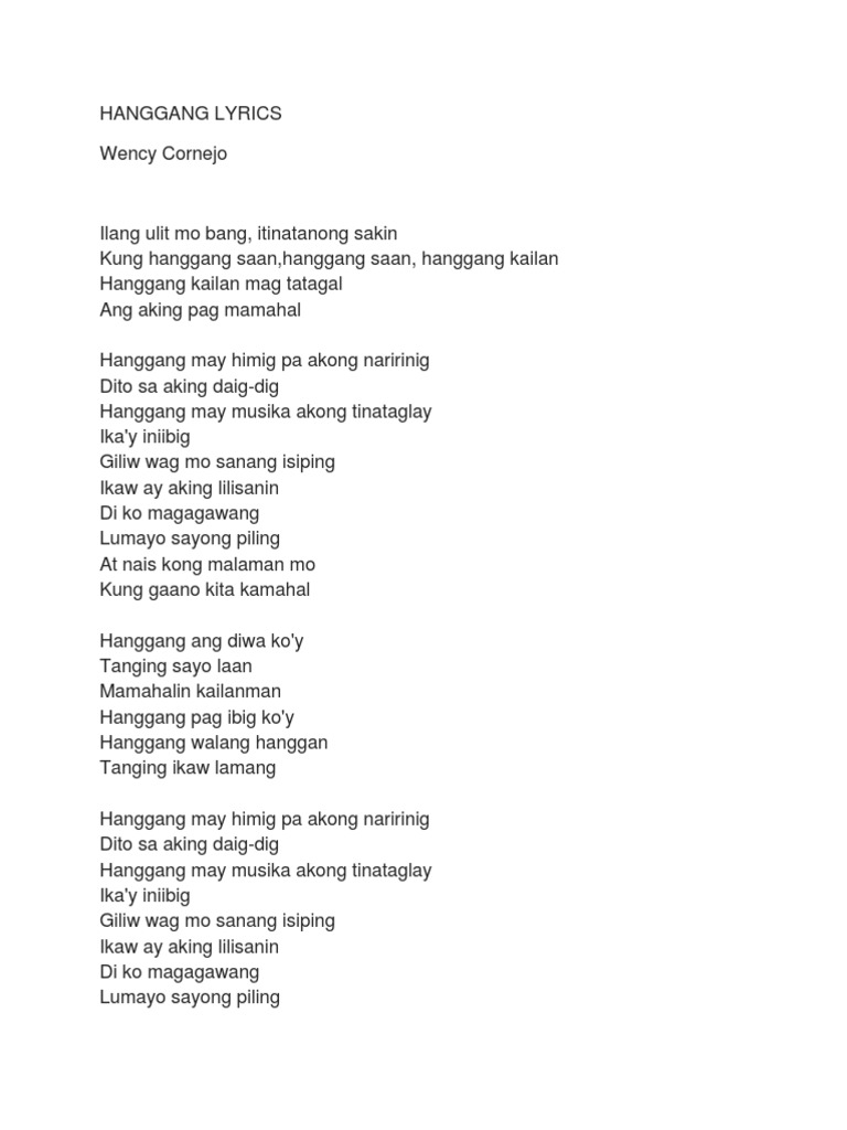 Ikaw lang ang nais ko lyrics. Baka hindi makaya kong mawawala ka. Browse for Ikaw Ang Nasa Isip Ko Ang Nais Ko Ay Malaman Mo Na Mahal Kita song lyrics by entered search phrase. Ikaw ang mahalaga pumapawi ng uhaw k Wala ng hihigit pa sa pagibig na inialay Mo.